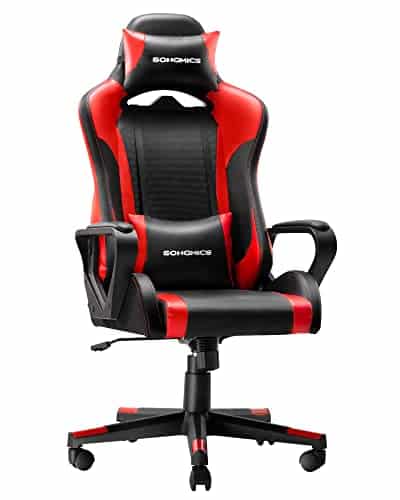 Gamingstol med Aftagelig Nakkestøtte, Lændepude, Højdejusterbar, Ergonomisk, Sort/Rød